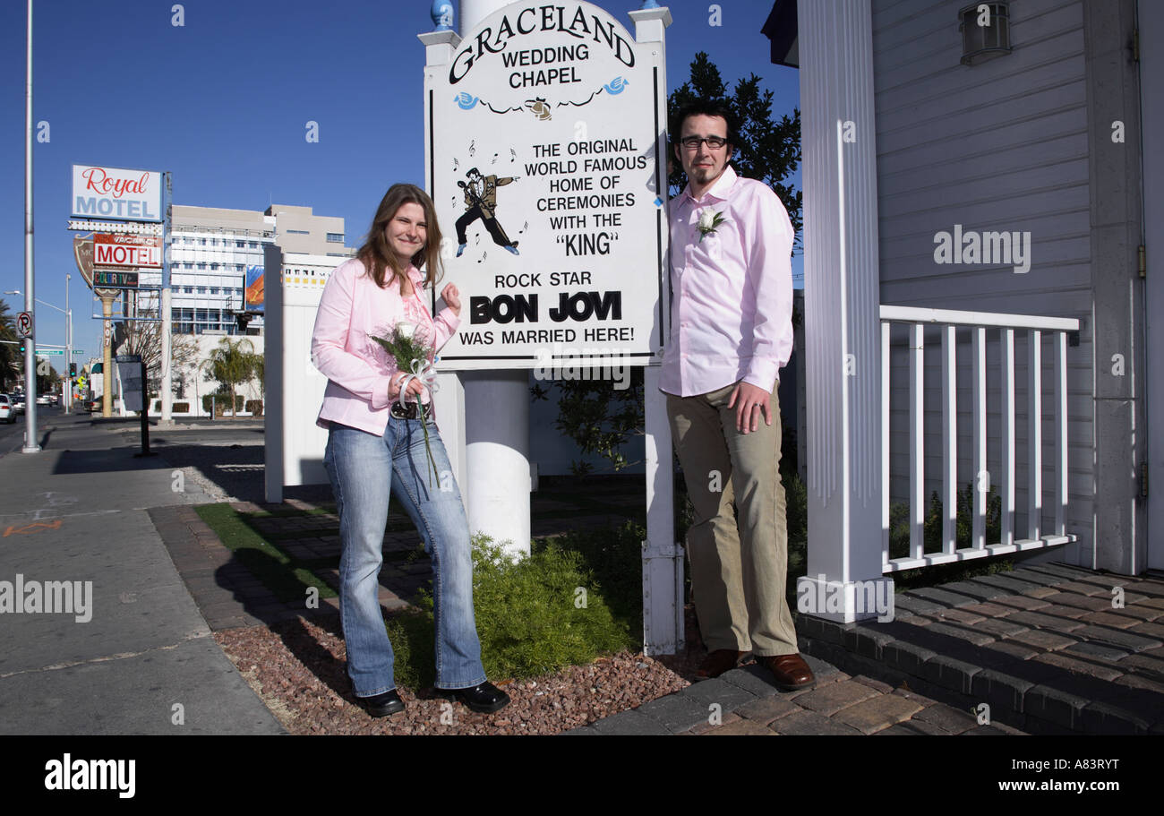 Just Married German Couple Infront Of Graceland Wedding Chapel On