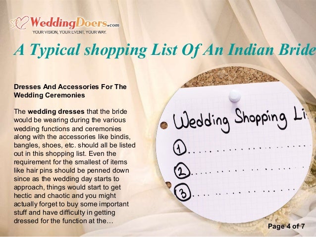 A Typical Shopping List Of An Indian Bride